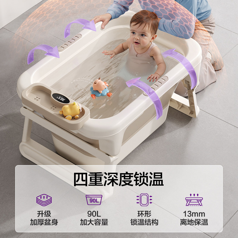 天可折叠儿童洗澡桶家用婴儿洗澡盆可躺坐大号小孩泡澡盆感温游泳桶