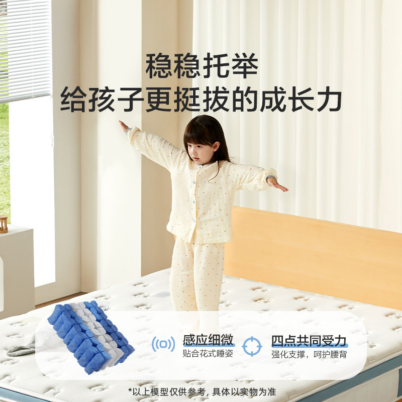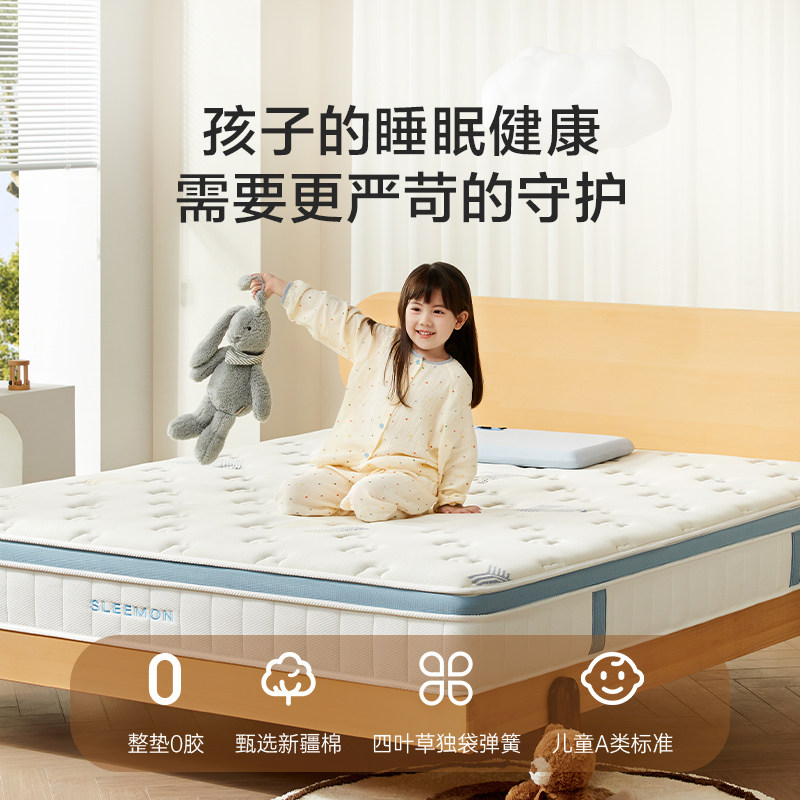 【诺蓝kids】喜临门舒脊透气席梦思0胶四叶草独袋弹簧儿童床垫,专为儿童成长设计,采用环保0胶工艺,安全无异味,守护孩子健康睡眠。独袋弹簧系统精准承托脊椎,有效分散压力,促进骨骼健康发育。四叶草造型设计寓意幸运与守护,增添童趣氛围。表层选用透气亲肤面料,搭配3D立体透气层,排湿散热,整夜干爽舒适。边缘加固设计防止塌陷,延长使用寿命。通过多项国际环保认证,品质安心可靠。诺蓝kids致力于为每一个孩子打造科学护脊、健康环保的理想睡眠空间,让成长更安心,睡眠更香甜。