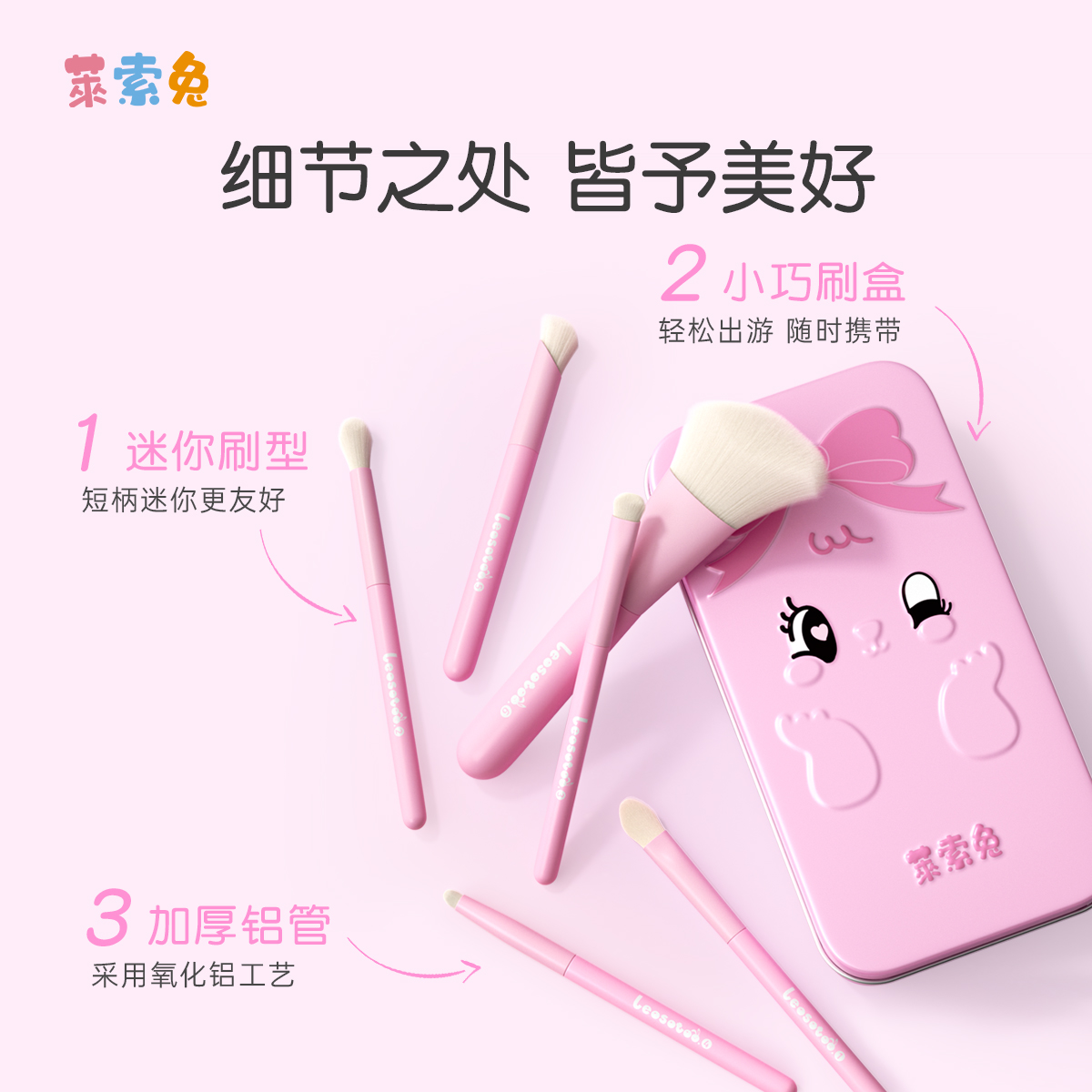 淘便携款5支羊毛化妆刷套装小号动物毛腮红刷超软彩妆工具配收纳包