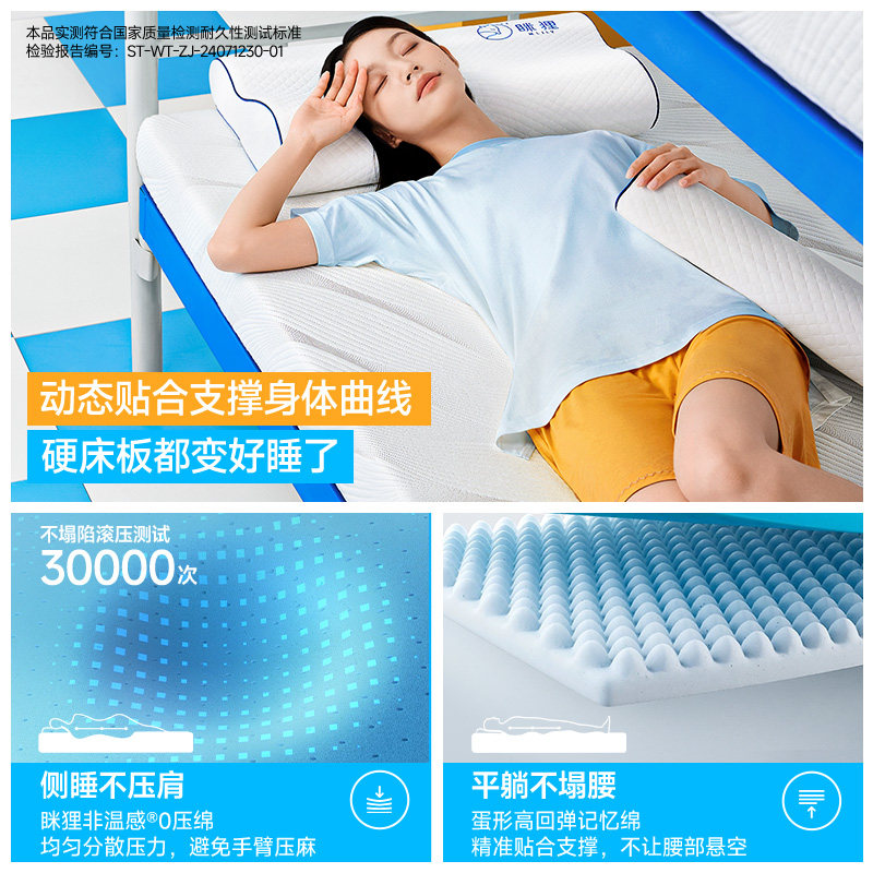 梦百合学生床垫专为宿舍、租房及榻榻米设计,采用高品质记忆棉材质,贴合人体曲线,有效缓解压力,提供舒适支撑。单人尺寸适配上下床、单人床等多种床型,厚度适中,软硬适宜,兼顾支撑性与柔软感。外套可拆洗,透气防污,易于清洁打理,适合学生及年轻人使用。轻便易搬运,铺设在现有床板或地板上即可升级睡眠体验。无论是宿舍生活还是临时住宿,这款床垫都能带来安静、安稳的睡眠环境,是提升生活品质的实用之选,让每一天都从优质睡眠开始。