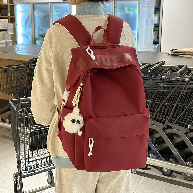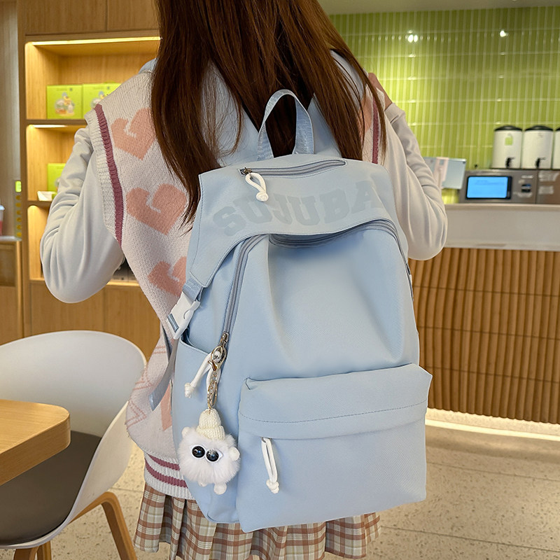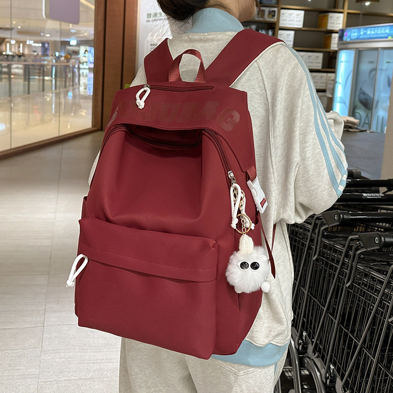 这款日系简约双肩包,专为学生群体设计,兼顾实用与时尚。采用优质耐磨面料,轻盈耐用,大容量主仓可容纳课本、笔记本、平板等学习用品,多层分隔收纳,井然有序。加宽肩带与背部透气设计,背负舒适,减轻肩部压力。简约纯色外观,百搭不挑人,适合大学生、高中生及初中生日常上课、自习或短途旅行使用。男女通用款式,线条利落,细节精致,既满足学习需求,又展现清新文艺气质,是校园生活的理想伴侣。