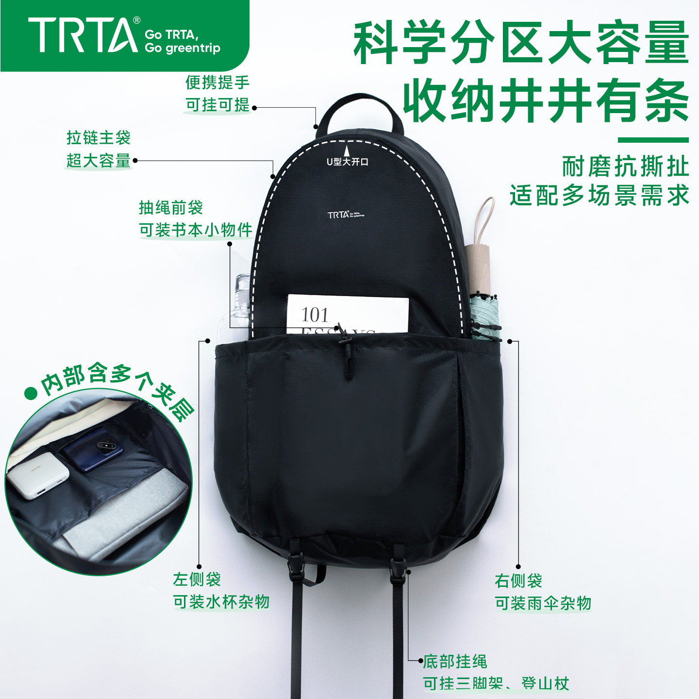这款超轻户外登山包专为徒步、旅行和日常休闲设计,采用高强度防水面料,有效抵御雨水侵袭,保障包内物品干爽。轻量化结构仅重约600克,背负舒适,搭配透气网眼背板和可调节胸扣腰带,分散肩部压力,适合长时间户外活动。大容量主仓配合多分隔口袋,轻松收纳衣物、水具、电子设备等必需品,男女通用设计,简约时尚。无论是短途徒步、周末露营,还是城市通勤、旅行出行,这款双肩包都能满足你对轻便、实用与耐用的多重需求,是户外爱好者和旅行达人的理想之选。