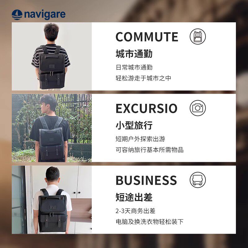 天猫Navigare纳维凯尔意大利小帆船双肩包男商务电脑书包通勤旅行背包