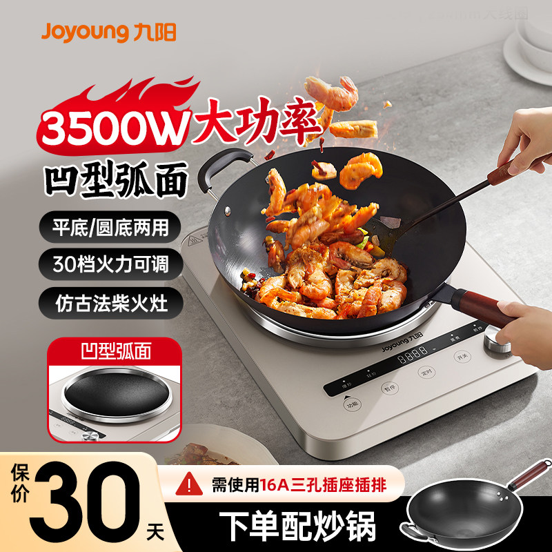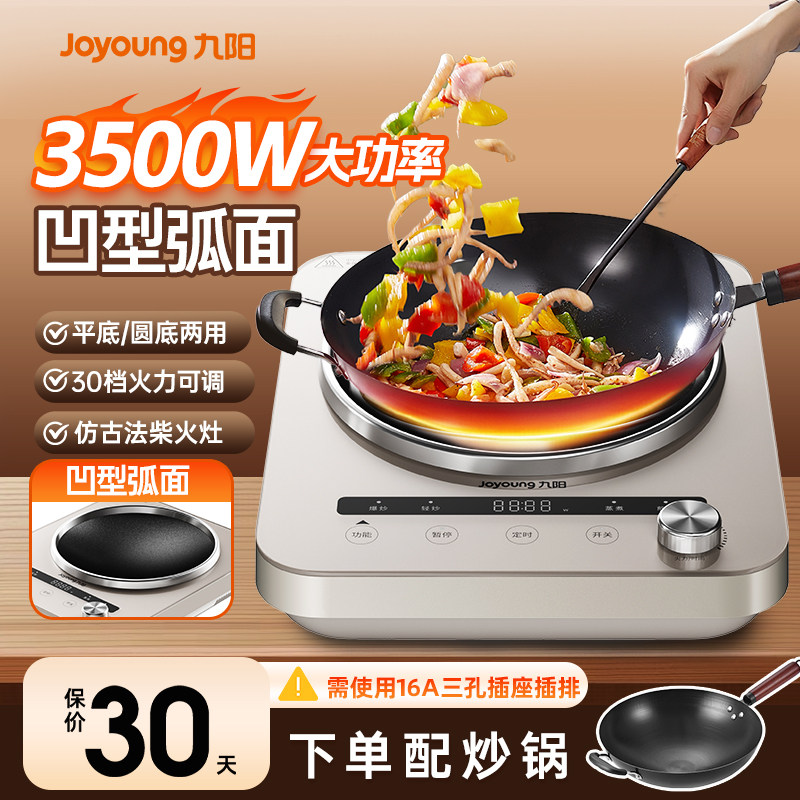 九阳凹面电磁炉家用大功率3500W炒菜锅一体全套猛火灶热2026新款