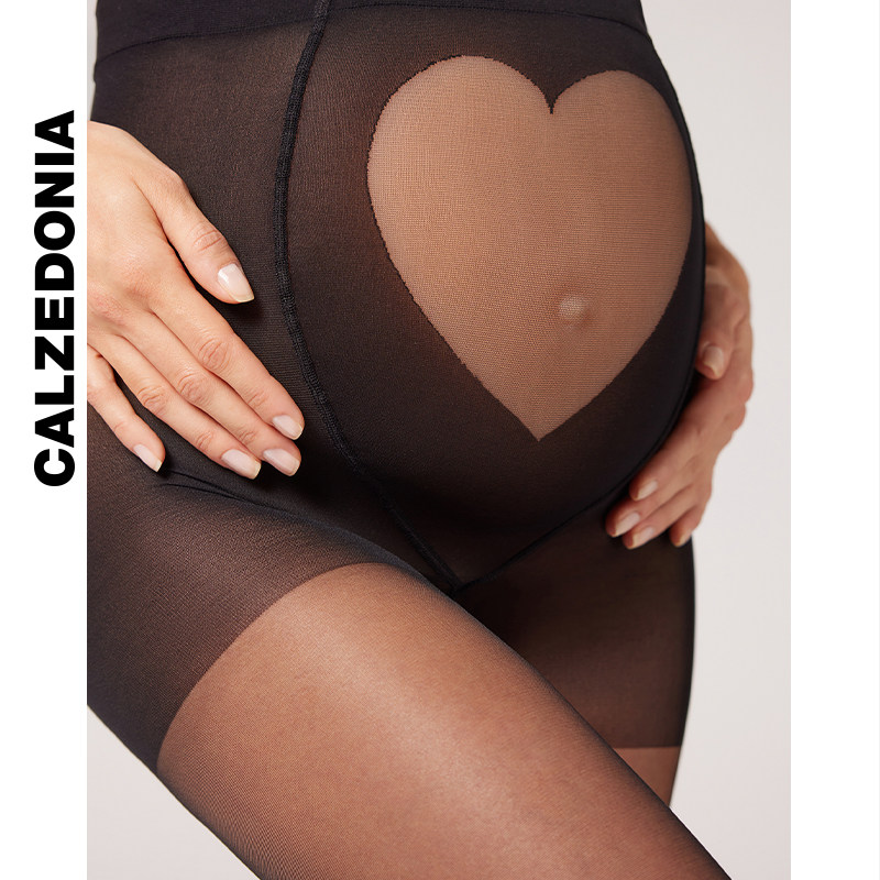 天猫CALZEDONIA卡泽意袜20D腹部心形透薄时尚孕妇连裤黑色丝袜LIC064
