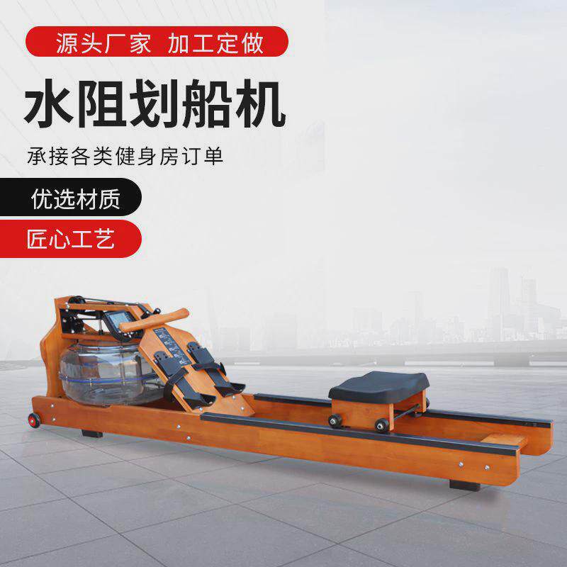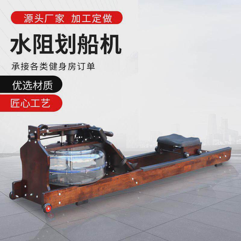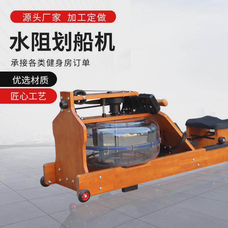 淘实木水阻可折叠划船机健身房家用有氧运动健身器材模拟水阻划船机