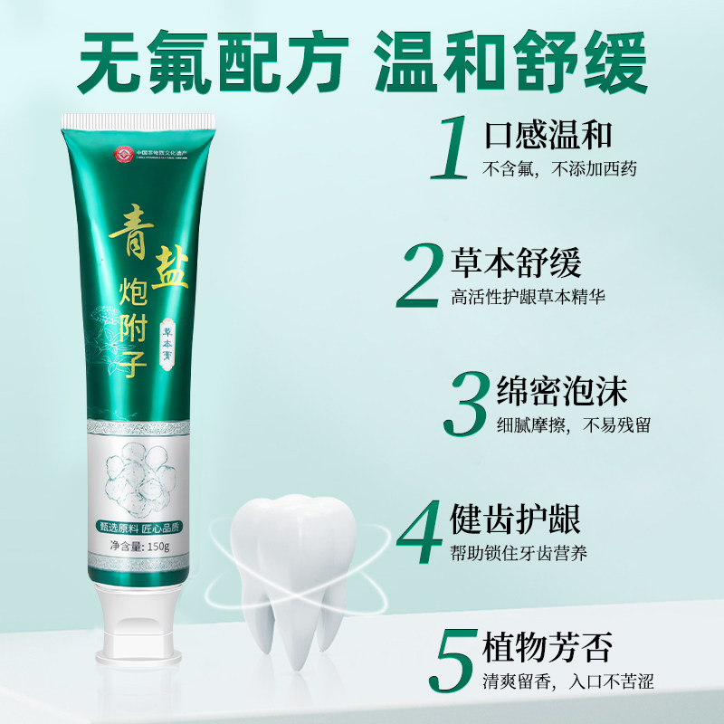 非遗传承青盐炮附子草本膏刷牙粉,源自传统中医古方,精选青盐、炮附子等天然草本精华,经非遗工艺精制而成。本品温和洁净,有效固齿护龈,改善牙齿松动、牙龈出血等问题,长期使用可增强牙釉质,提升口腔健康。倪海厦旗舰店正品保障,传承中医智慧,融合现代科技,安全无刺激,适合日常护理。坚持使用,令牙齿坚固、口气清新,重现健康亮白笑容。每一份产品都承载着千年中医文化的匠心传承,是您守护口腔健康的理想之选。