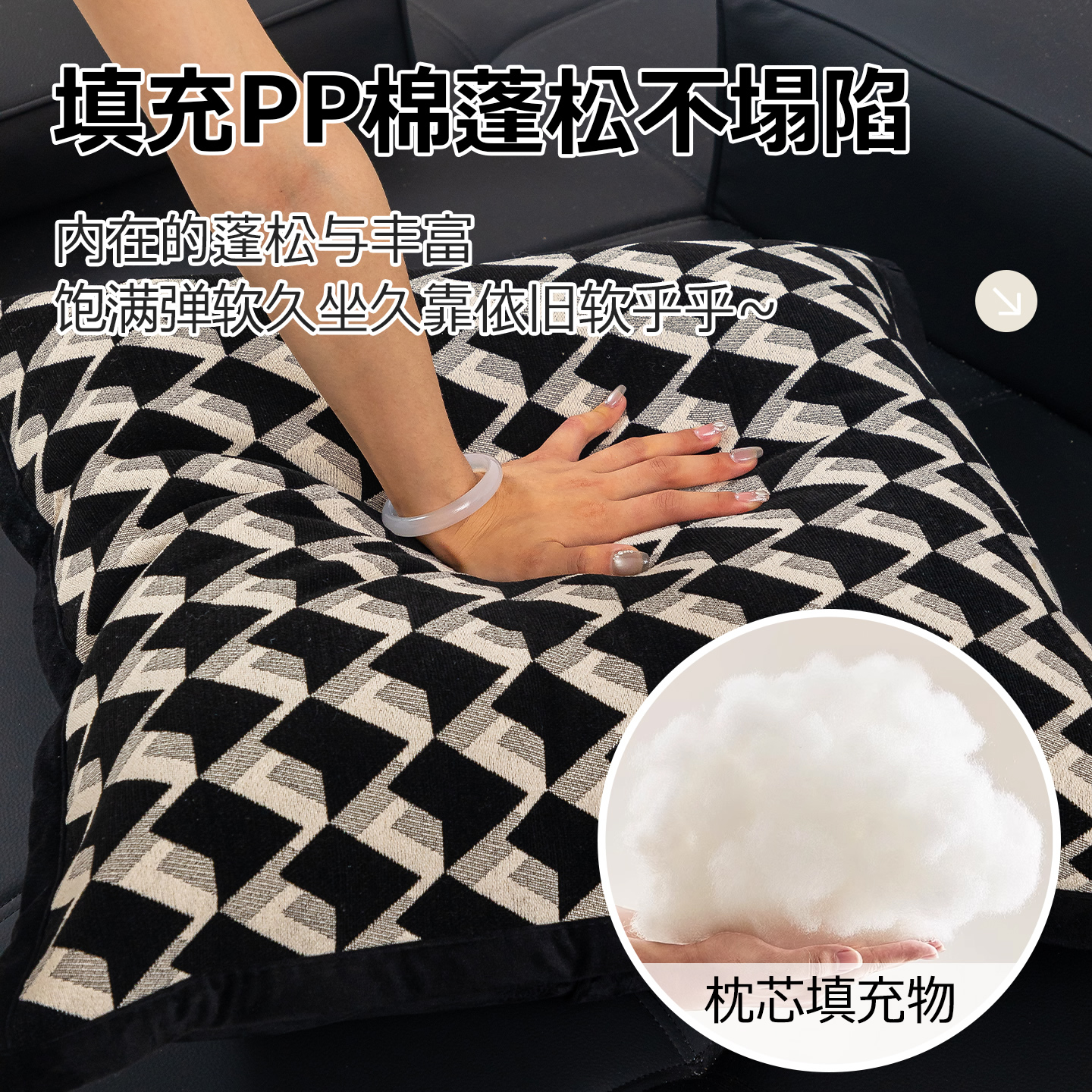 淘一件代发|现代简约轻奢家用沙发抱枕套绒面刺绣几何图案靠垫软装