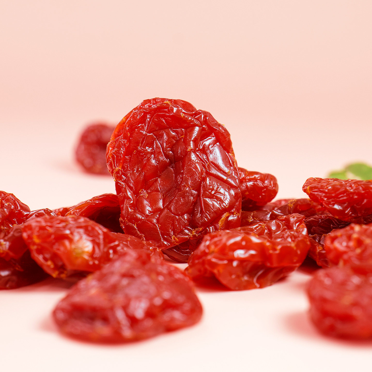 圣女果干,又称小番茄干、千禧果干,是以优质新鲜圣女果为原料,经清洗、去蒂、低温烘干或蜜渍等工艺精制而成的天然果干。成品保留原果的酸甜风味与丰富营养,富含维生素C、番茄红素及膳食纤维,口感软糯微韧,甜中带酸。既可作为健康零食直接食用,也广泛用于烘焙、甜品、酸奶搭配及餐饮装饰,是商用烘焙原材料和休闲食品的理想选择。无添加防腐剂,天然健康,适合家庭、咖啡馆、烘焙坊及食品加工企业使用,满足现代消费者对天然、营养、便捷食品的需求。
