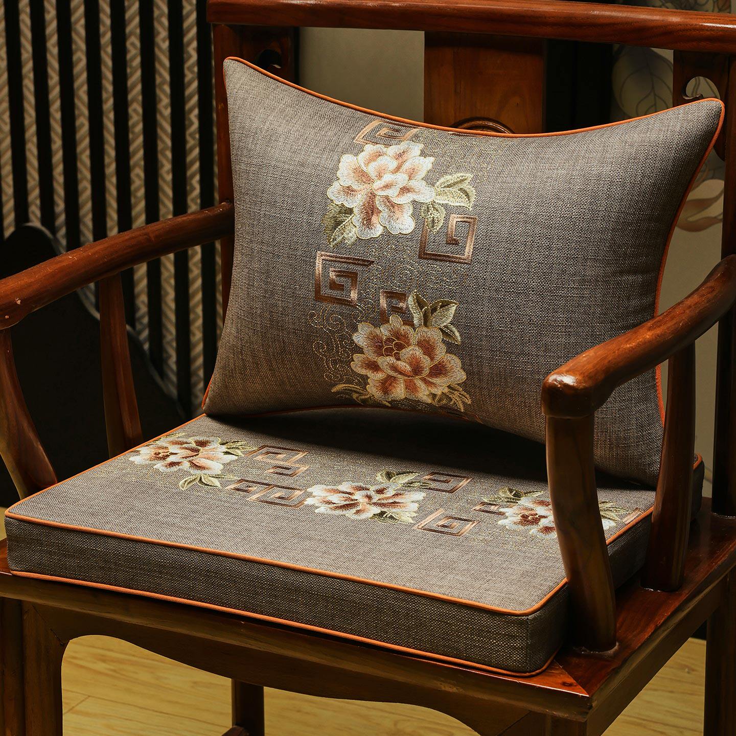 中式茶椅垫防滑加厚实木椅子垫太师椅圈椅垫红木坐垫靠枕醒狮献瑞