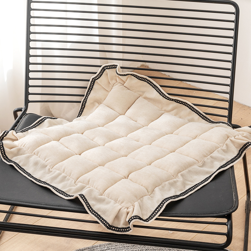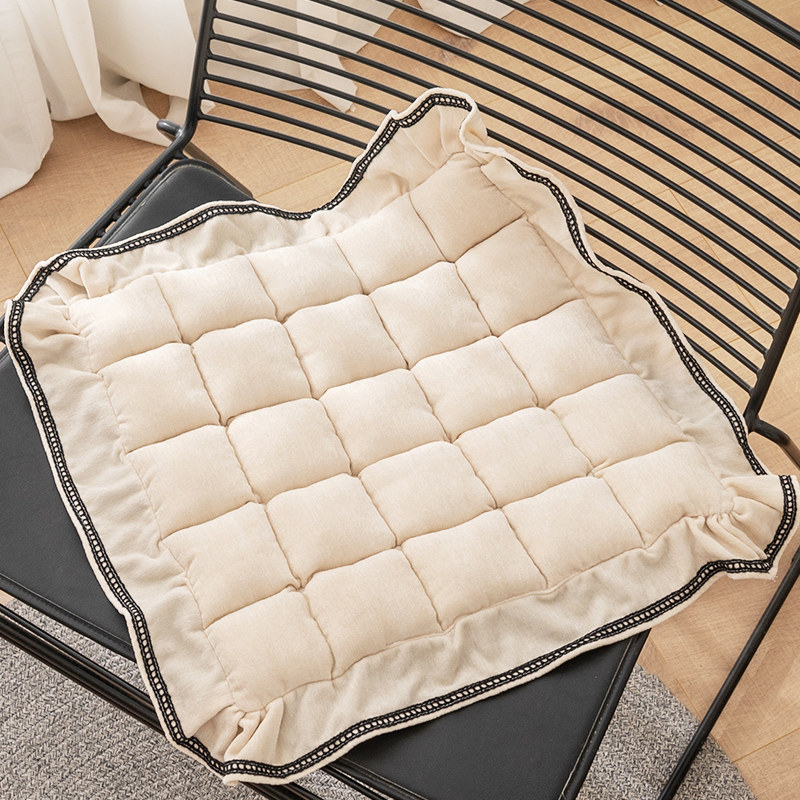 韩式纯色绗缝坐垫加厚布艺椅子垫加大办公室座垫全棉防滑可水洗