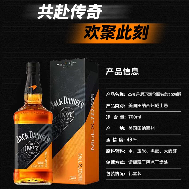 天猫【官方旗舰店】杰克丹尼迈凯伦2025联名款威士忌进口洋酒调酒基酒