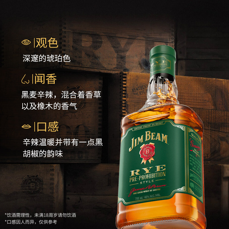 天猫宾三得利JimBeam金宾黑麦波本威士忌美国进口洋酒
