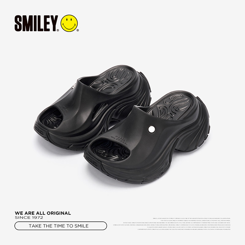 【刘萌萌同款】SMILEY笑脸黑色海星厚底增高9CM沙滩凉鞋,融合潮流与舒适,打造夏日吸睛穿搭。鞋面点缀经典SMILEY笑脸与俏皮海星图案,黑色基底百搭又显个性,轻松驾驭度假风或街头造型。9CM厚底设计隐形增高,拉长腿部线条,行走稳健不累脚。EVA材质轻盈防滑,适合沙滩、泳池边或日常出街。一体式拖鞋设计穿脱便捷,透气舒适,是夏日出行的时尚利器。无论是海边漫步还是城市漫游,这款凉鞋都能让你笑容满分,轻松成为焦点。