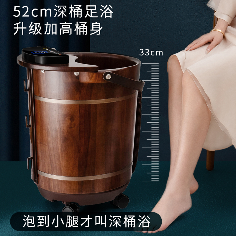 天初心木质家用足浴桶50CM过小腿泡脚桶按摩高深实木带盖木桶洗脚盆