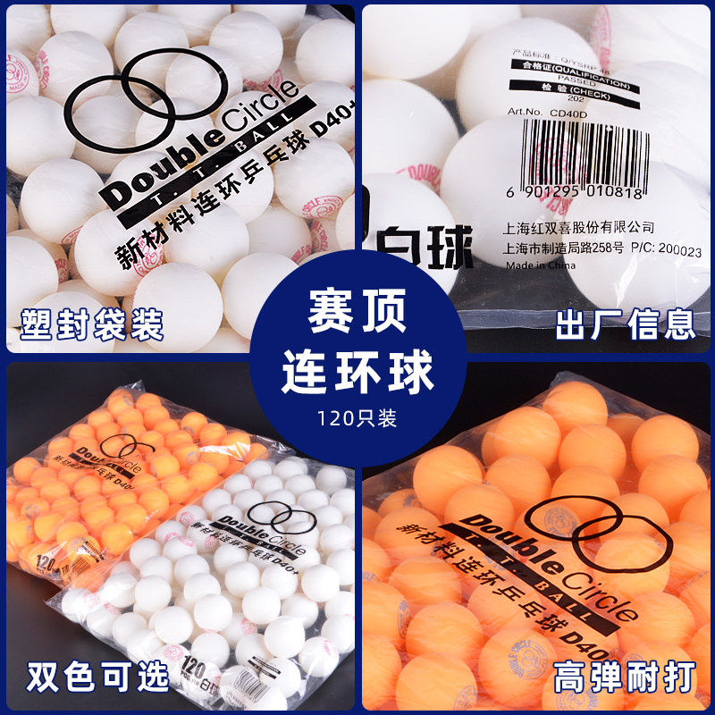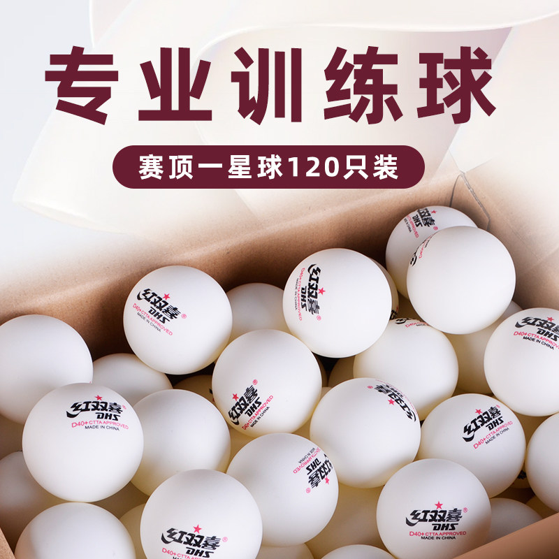 天猫红双喜乒乓球三星一星120只装兵乓球训练球耐打比赛用乒兵球D40+