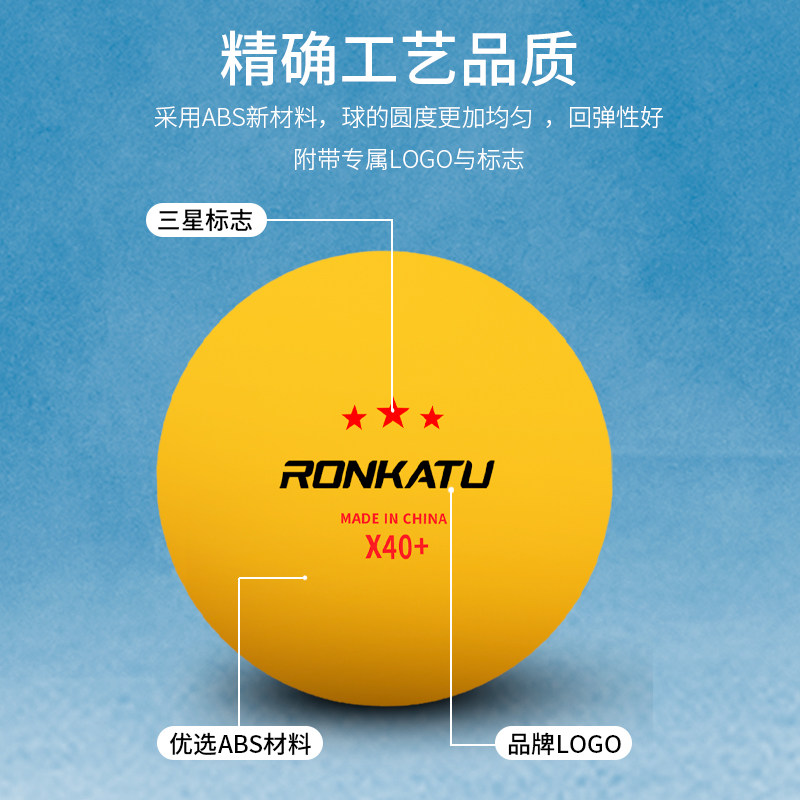 天猫龙卡图乒乓球三星级X40+新材料ABS兵乓3星比赛训练用球耐打高弹力
