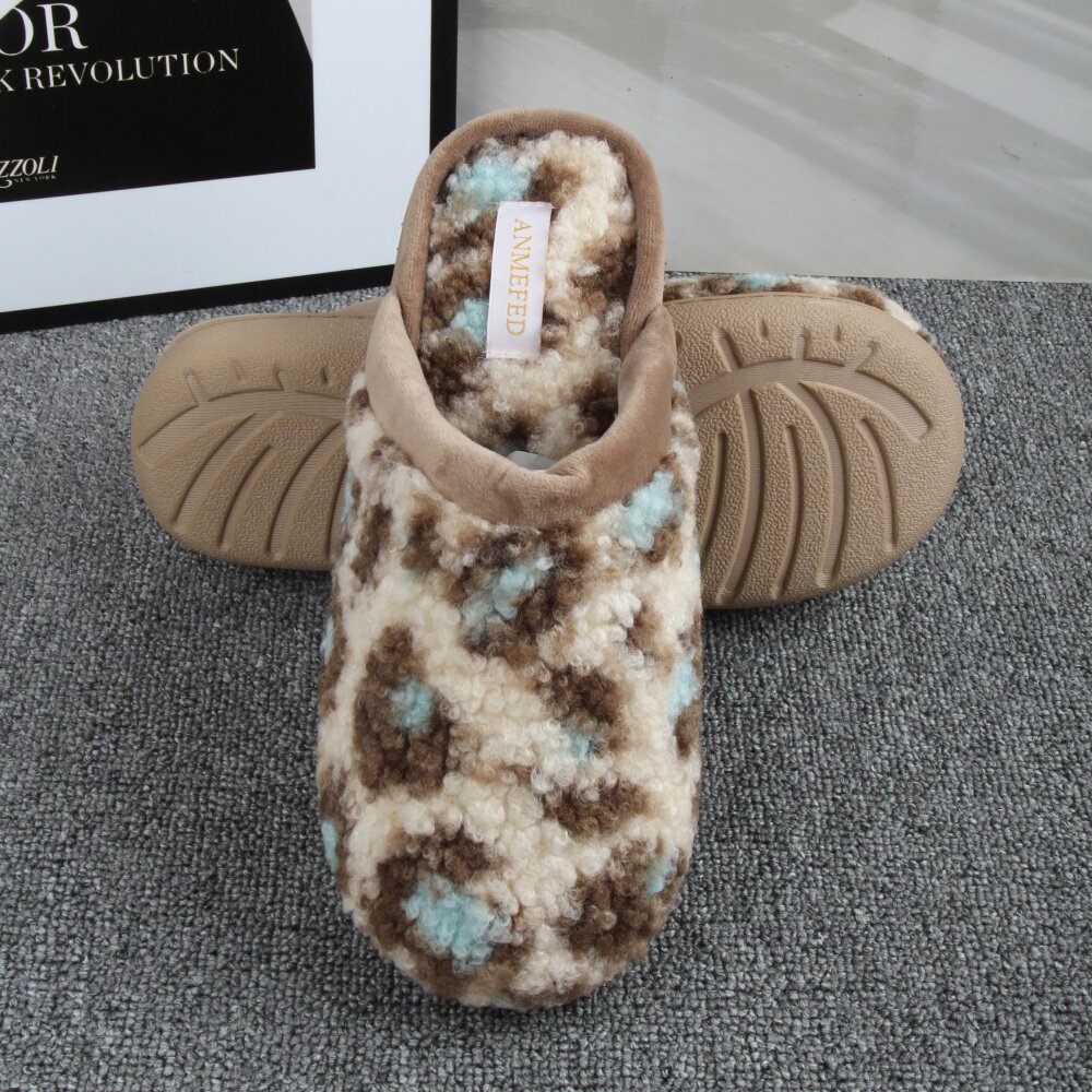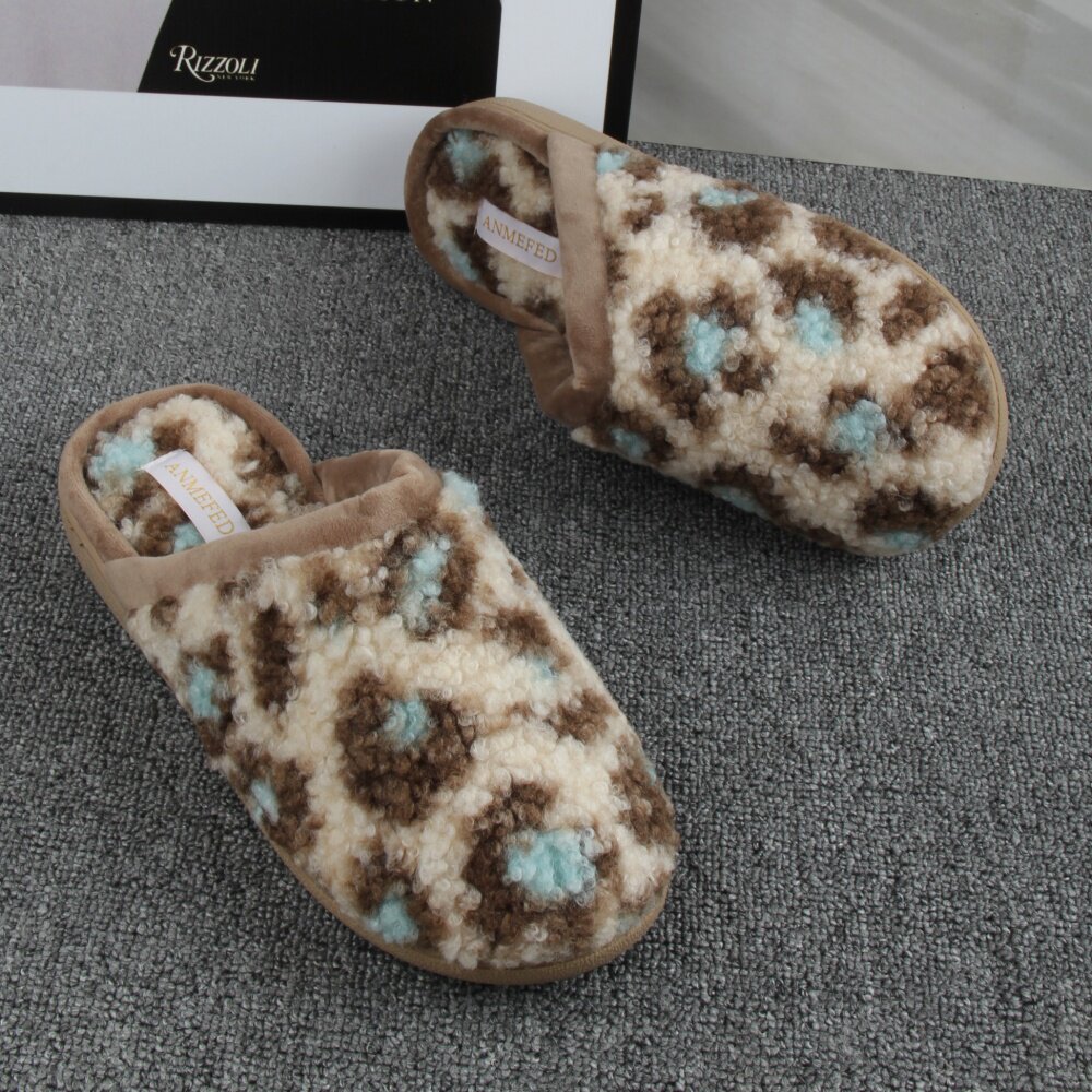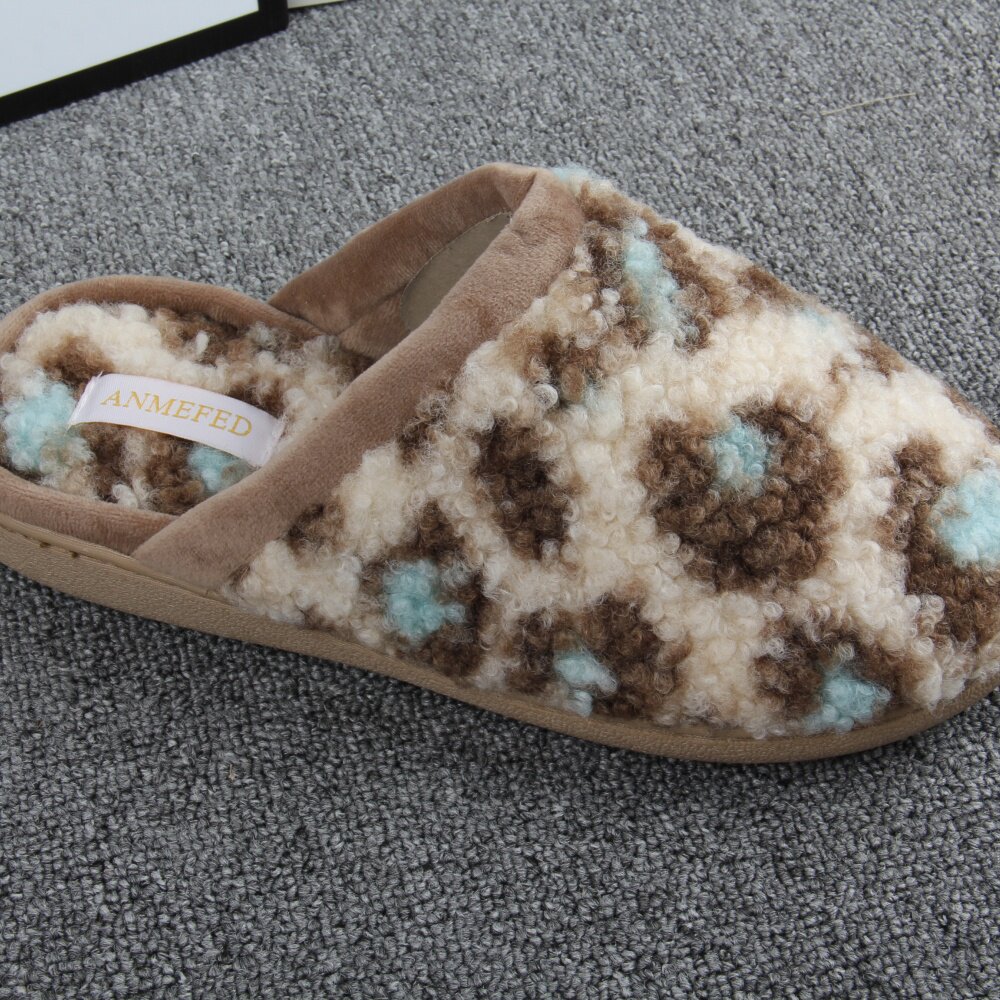 淘宝出口外单秋冬新品豹纹加厚绒橡胶底时尚耐磨室内居家用棉拖鞋女士