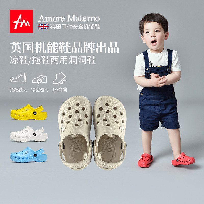 天猫Amore Materno 儿童夏季洞洞鞋男童凉拖鞋防滑女童拖鞋防滑沙滩鞋