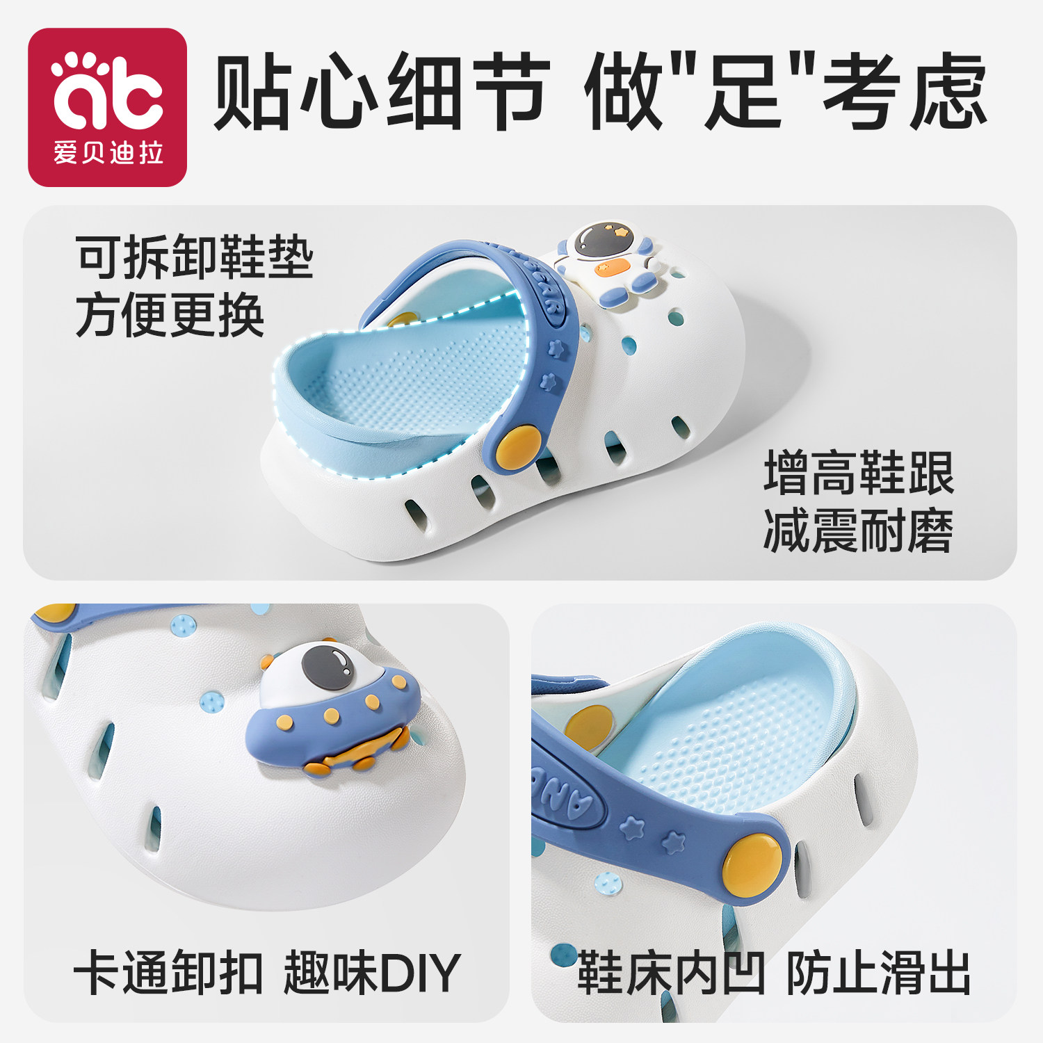 这款儿童洞洞鞋夏季新款,专为活泼好动的男童女童设计,兼具舒适与安全性。采用轻质环保EVA材质,柔软耐穿,透气排汗,有效防止闷热出汗。鞋面立体洞洞设计,不仅时尚可爱,还能快速排水,特别适合室内家居、洗澡、泳池或沙滩等场景使用。防滑耐磨大底,抓地力强,有效避免滑倒,呵护宝宝每一步。魔术贴或弹力后跟设计,穿脱方便,贴合脚型不磨脚。多色可选,萌趣十足,是夏日出行的理想选择,让宝贝在清凉中自在玩耍,安全又时尚。