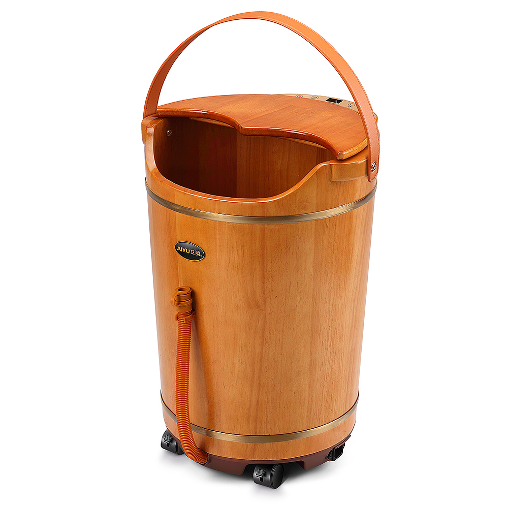 天猫艾羽泡脚桶过膝电加热恒温洗脚盆按摩足浴盆自动高深木桶小腿家用