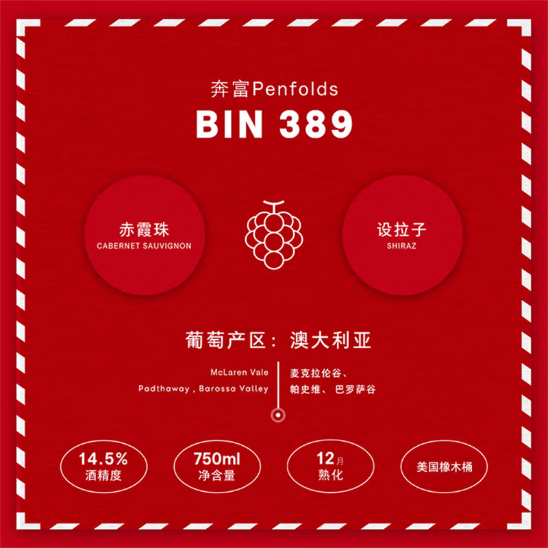 天猫【国行】奔富BIN389红酒马年礼盒装澳洲进口干红葡萄酒正品送礼