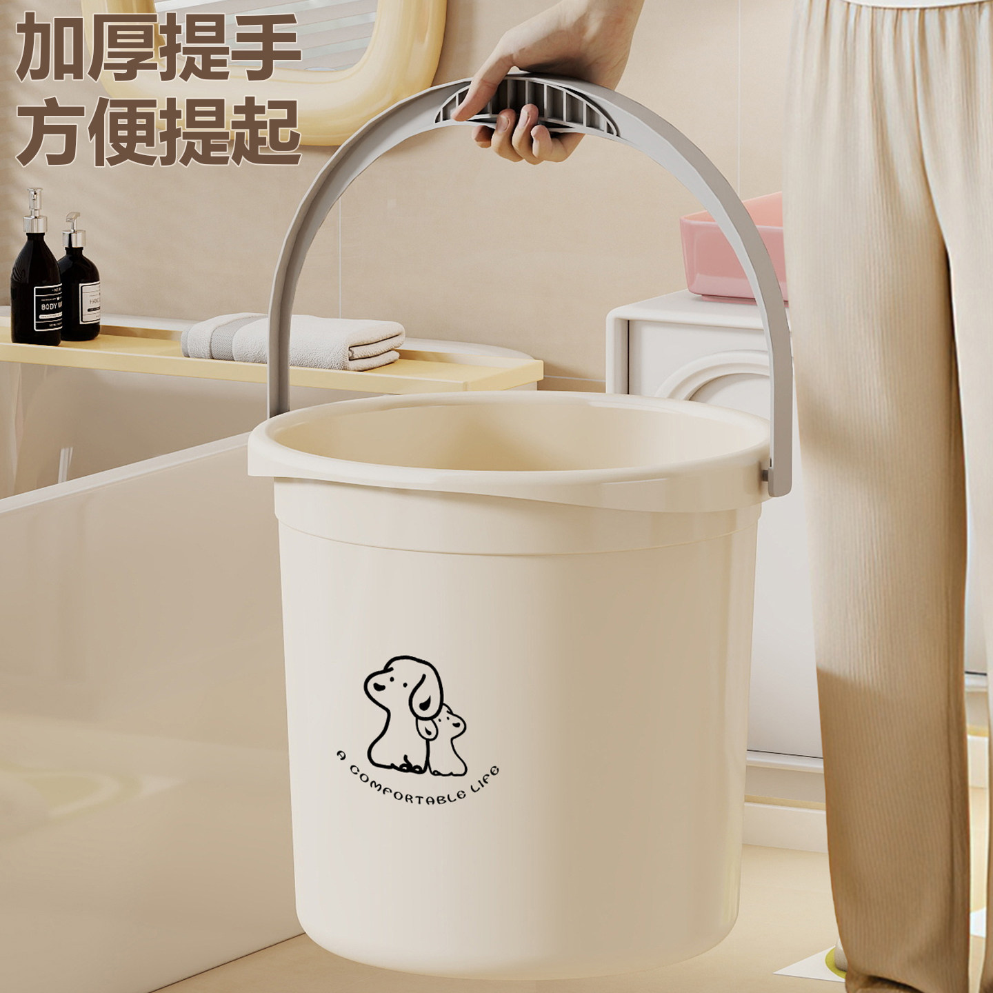 这款家用多功能手提水桶,专为学生宿舍、租房人群设计,集洗澡、洗衣、泡脚、储水等多种用途于一体。采用优质加厚PP材质,坚固耐用,抗摔抗压,不易变形,使用寿命长。大容量设计,满足日常洗漱、清洁及储水需求,底部防滑纹理增强稳定性,边缘加厚提手舒适不勒手,方便提拿移动。桶身光滑易清洗,无异味,安全环保。无论是宿舍限电无法使用洗衣机,还是户外露营、居家备用,都是实用之选。一桶多用,节省空间与开支,是学生党和租房族的贴心好帮手。