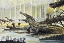 包括了世界上70%的陆地脊椎动物物种。兽脚类动物(哺乳动物的近亲)是陆地动物的主要群体,它们被主龙类取代——今天的鳄鱼和鸟类的远亲爬行动物表亲。在它的头骨前部进化出一个坚固的厚骨圆顶,仿佛蜥蜴和袋鼠的混合体。一种拥有桶状胸部的食草动物,但甲龙是在这种爬行动物灭绝后很久才出现的恐龙。它与白垩纪的似鸟龙有着惊人的相似之处。三叠纪的伪鳄占据了除今天的鳄鱼之外的生态位。