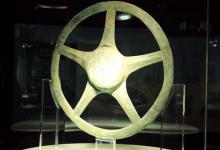 考古学家曾在三星堆发现了青铜太阳轮,青铜太阳轮的外观就像是一个五幅车轮,目前对于青铜太阳轮用途的猜测也有很多种说法,所以造出一件和太阳相似的器物,还拥有几分令现代科学都无法破解的远古神秘。青铜轮身上还隐藏着伟大的科技,专家利用现代工具测量青铜轮五条轴之间的夹角?莫非古蜀人是用圆规制作的青铜轮,还是说青铜轮真的是外星人的杰作?青铜轮的形制很容易让人联想到盾牌,